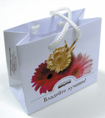 - Как я уже сказала, машина покупалась прежде всего для изготовления бумажных пакетов -- нашей типовой продукции. Ее технических возможностей вполне для этого достаточно. Еще одним требованием к машине было то, чтобы она хорошо печатала плашки. У нас часто заказывают бумажные пакеты, которые должны быть совершенно определенного цвета. Дизайнерскую бумагу нужного оттенка не всегда можно подобрать, поэтому, как правило, мы полностью запечатываем лист соответствующим Pantone и затем ламинируем. Плашки получаются плотные и качественные. Клиенты очень довольны. Полноцветная продукция также получается с хорошим совмещением по цвету.