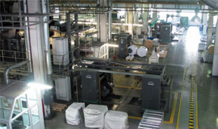 Вид на печатные машины с зоны загрузки бумаги — начального этапа логистической цепочки |
