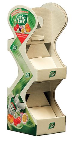 • Шоу-боксы. Их еще называют настольными витринами. Позволяют разместить промо-образцы для презентации нового продукта. В таких мини-витринах товар хорошо виден и просто призывает его попробовать. Они располагаются обычно в прикассовой зоне или непосредственно на полке с товаром, выделяя его среди прочих. Шоу-боксы изготавливаются, как правило, из гофрокартона. В этом случае технология их производства схожа с изготовлением упаковки. Это предусматривает каширование, сложную вырубку и склейку до 2–3 точек. Если требуется точное воспроизведение корпоративных цветов для большей узнаваемости бренда, при печати могут использоваться смесевые краски Pantone. Оттиск обычно покрывается сплошным ВД-лаком. Дополнительные способы финишной отделки обычно не используются.